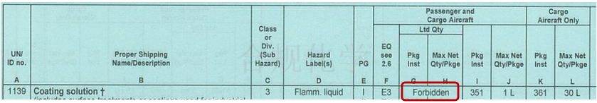 ●前提:只有允许客机载运的危险货物才有可能按照LQ运输,如果DGR法规的《危险货物一览表》(以下简称DGL)里客机载运一栏是“Forbidden”禁止运输,则意味着该货物不可以按照有限数量运输。