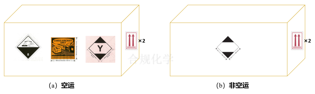 图7 空运与非空运LQ运输标记标签粘贴示例