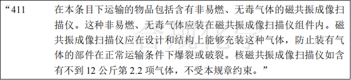 如上所述,UN2857有SP119给予豁免普货的条件。MRI扫描仪虽然不是用于外部冷却的制冷机,但扫描仪本身包含冷却装置。故也应考虑等同采纳SP119豁免。