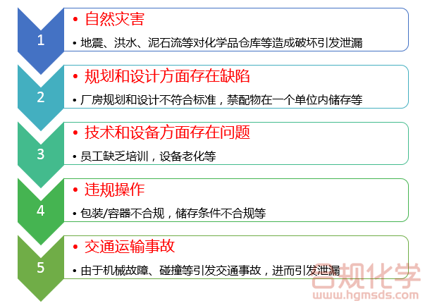 危险化学品发生泄漏的原因往往是多方面的。常规情况下,引发泄漏事故的原因主要有以下五点,如图1所示。