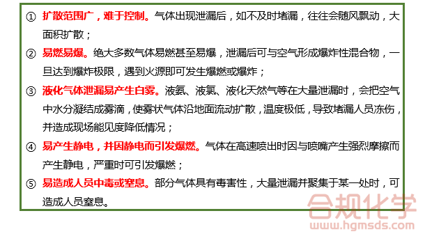 危险化学品的泄漏特点主要取决于化学品的物理状态,不同形态的危险化学品在生产、储存以及运输等环节中所表现出来的泄漏特点有明显差异。具体如下所示。