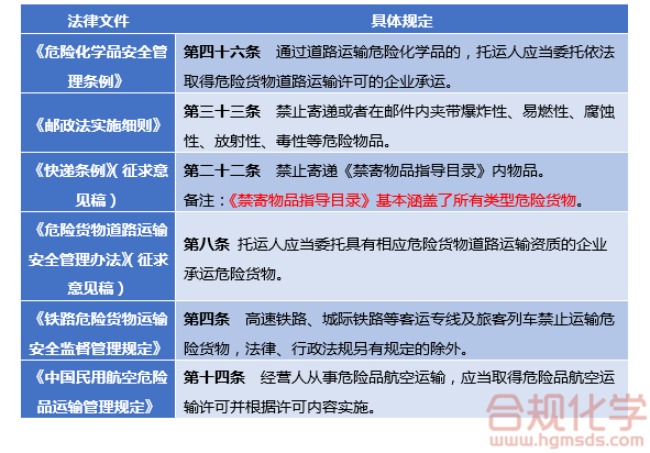 由上表可知,目前我国对危险货物运输环节的监管可谓是“一刀切”,危险货物的承运人必须具备相关运输资质,同时满足危险货物运输的相关规定。换句话说,我国目前的小包装危险货物是禁止采用快递运输的。