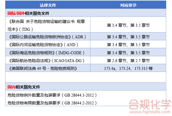 二、国内外关于小包装危险货物运输的相关豁免文件