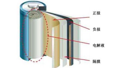 目前通常所说的锂电池特指锂离子电池,其正负电极由不同的锂离子嵌入化合物组成,是一种实现化学能与电能相互转化的装置。其构造主要由电池正负极组成,如下所示。