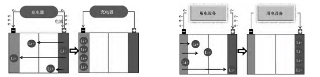 当锂电池处于放电过程中时,附着在负电极的锂离子开始迁移回正电极,过程中蓄电池继续放电,终端电压持续下降。一旦所有锂离子从正极端子迁移完毕,电池完全放电,则需要再充电后使用。如图4。