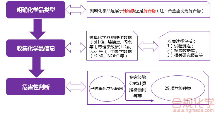 学习并了解危险化学品的分类体系即是为了能够准确地判断化学品具有哪些危害,从而有效促进化学品“从摇篮到摇篮”的全生命周期安全管理。那么应如何对化学品进行危害性分类呢?通常情况下,一般按照下述流程对化学品进行危害性分类。如图1所示。