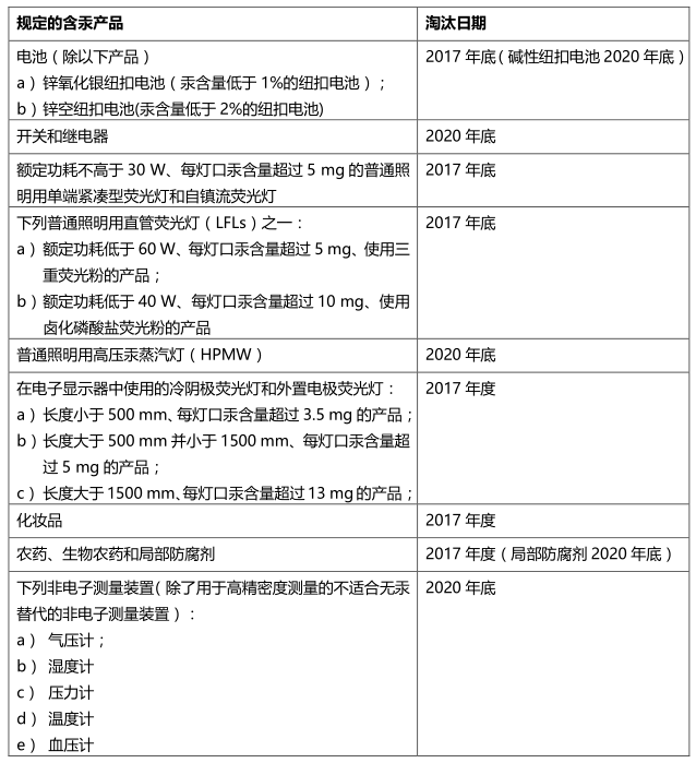 实施细则将对《防止汞污染环境法》附件A的第一部分“规定的含汞产品”进行管理,为它们规定了汞的限值要求和废除时间。