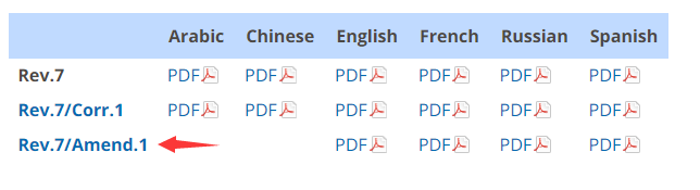 如图2所示,目前《试验手册》第7修订版第1修正案只有英文、法文等4种语言版本,预计中文版要到2022年发布。
