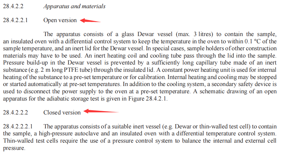 本次修订进一步完善了第28.4.2.2节有关试验设备和材料的表述,增加了open version和closed version两种试验方式,具体如图8所示。