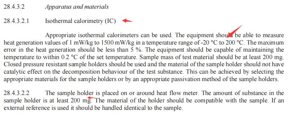 试验H.3的试验设备有了更加明确的技术要求,而且鼓励使用等温量热仪。如图9所示,所用的等温里量热仪温度测定范围有了明确规定,样品容器的装样量由原来的20g改为至少200mg。