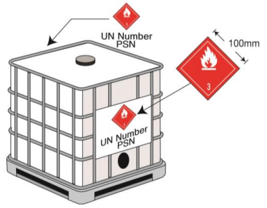 根据联合国TDG法规第5.2.2.1.7条的规定,体积超过450L的IBCs和大包装,需要在其相对的两面加贴运输标签。