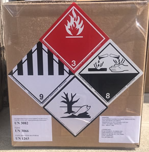 在完成货物打包之后,根据联合国TDG等运输法规的要求,危险货物在运输之前,还需要在其外包装表面加贴规定的标签(Label)和标记(Mark),以及填写相应的托运单证,