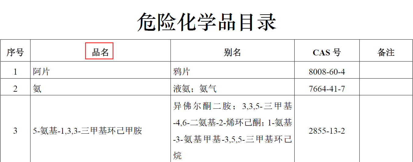 化学品正式名称应填写《危险化学品目录》(2015版)(以下简称《目录》)中“品名”栏对应的名称,如下图4所示。