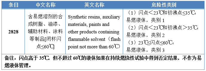 所以,针对目录中第2828项条目产品,即便其闪点≤60℃,如满足上述条件,即可对其易燃性做出豁免。
