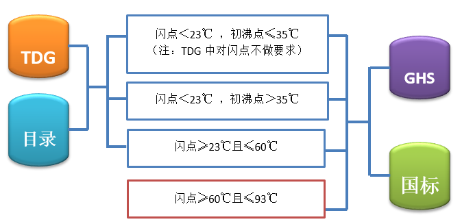 在联合国GHS制度、GB 13690-2990(会在近期被GB 30000.1代替)以及GB 30000.7中,易燃液体的定义是指闭杯闪点(以下简称闪点)不大于93℃ 的液体。而在TDG规章范本中,易燃液体则指的是闪点不大于60℃的液体。同时,前两者通过闪点判断标准将易燃液体分为了4大类,而后者则是分为3大类。