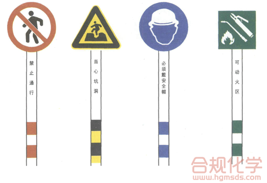 而纵向的文字辅助标志一般则是在安全标志的下方标志杆的上方,其衬底色均为白色,字体均为黑色,而标志杆下部色带的颜色则应与安全标志的颜色相一致。具体示例见图1。