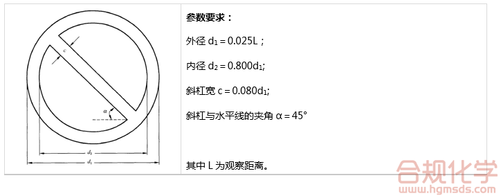 需要注意的是,除了标志的形状跟颜色有严格要求外,对于标志的一些参数,如内径、外径、斜杠宽度等也有明确规定。对于“禁止标志”的参数要求,如表3所示。