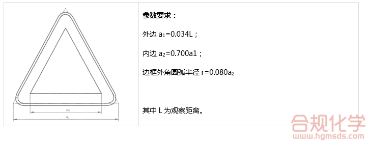 警告标志在基本型式的参数上也有相应要求,包括内外边的长度以及边框外角圆弧半径等。具体参数要求如表5所示。