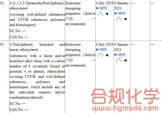 ①物质是否因为属于内分泌干扰物,而列入REACH法规附件 XIV授权清单中,图2展示了清单中所包括的两种内分泌干扰物。