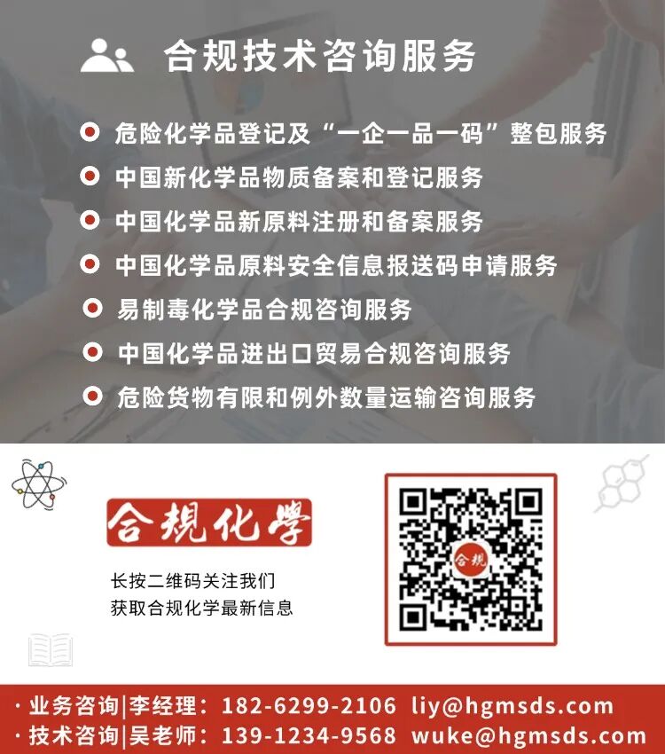 如果您对产品是否需要鉴定、危化品登记流程如何优化、或者SDS/标签是否合规仍有疑虑,欢迎随时联系合规化学的技术团队。
