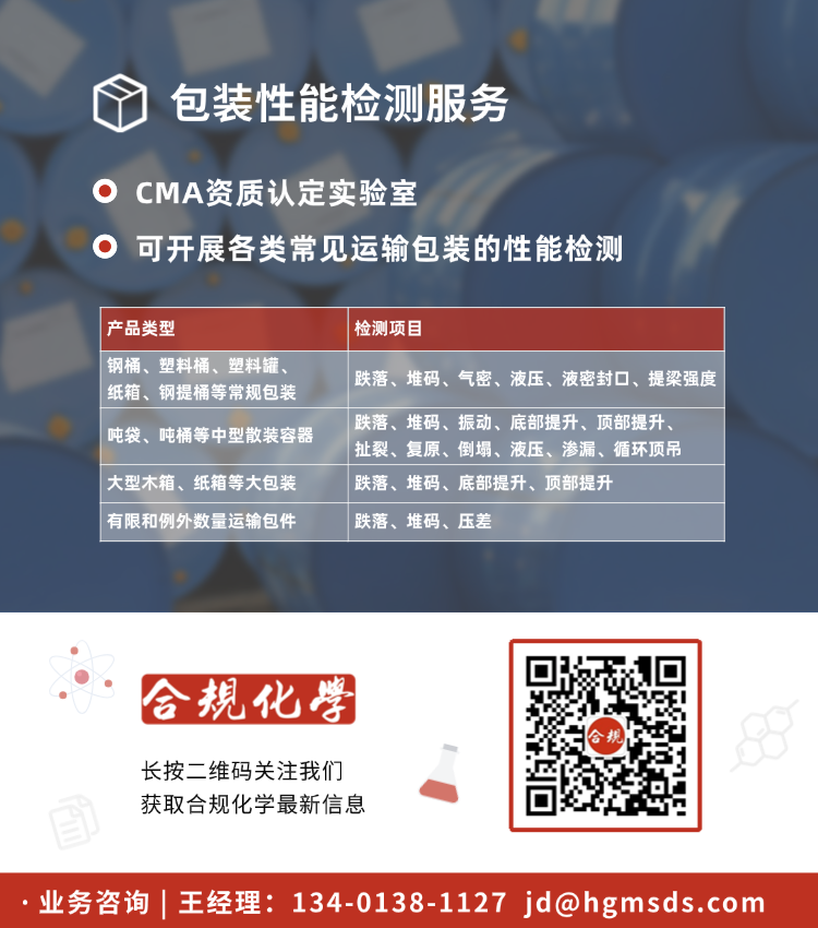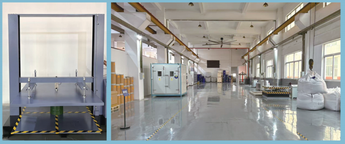 为了给客户提供一站式货物运输合规鉴定/检测服务,合规化学在原有化学品危险特性鉴定能力(CNAS17020/17025认可)的基础上,自2025年开始筹建货物包装性能检测实验室,搭建了800平方包装检测专用场地,拥有集装袋顶吊试验机、抗压机、高温堆码试验机、气密试验仪等20多套专用设备。