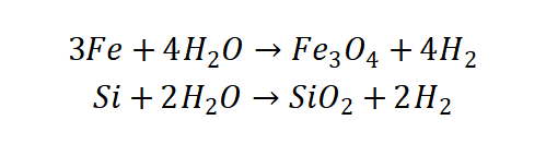 •第4.3项遇水放出易燃气体:硅铁在遇水时会发生化学反应,产生氢气,氢气为易燃气体会引起爆炸的可能性。一般来说金属和硅在一定条件下可能存在遇水放气的危险,故硅铁合金也会存在遇水放气的可能性: