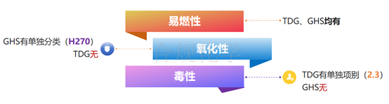 气体在危险性分类上面,联合国TDG与GHS差异有一定的区别,具体如图4所示。
