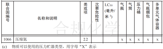 图5 氮气在联合国TDG法规中列明UN编号和临界温度