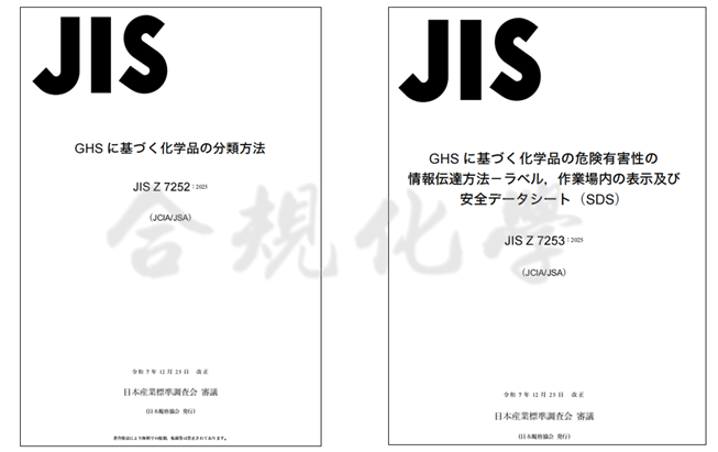 近期,日本工业标准委员会(JISC)正式发布了JIS Z 7252:2025《化学品分类》和JIS Z 7253:2025《化学品危险传递——标签和安全技术说明书》,取代2019年发布的JIS Z 7252:2019和JIS Z 7253:2019。
