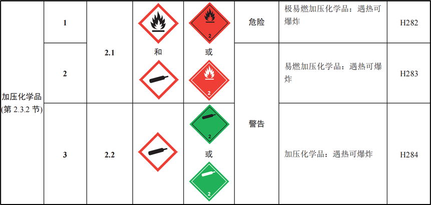 新标准引入了GHS第9修订版中“加压化学品”这一新的危害类别,分类体系与气雾剂类似,细分为类别1、类别2和类别3,其中类别1和类别2属于易燃加压化学品。