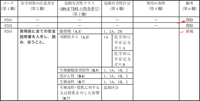与我国类似,作为日本执行联合国GHS制度的重要技术标准,JIS Z 7252规定了化学品的物理、健康和环境分类,而JIS Z 7253规定了化学品SDS和GHS标签编写要求。 本次发布的2025版新标准在技术内容上与联合国GHS制度第9修订版保持一致。为了给工业界充足的时间去更新化学品的分类、SDS和GHS标签,新标准给予了5年过渡期,将于2030年12月25日强制实施。 与2019版JIS Z 7252和JIS Z 7253相比,新标准在化学品危害分类、GHS标签编写的H编码和P编码方面有了较大更新,具体如下。