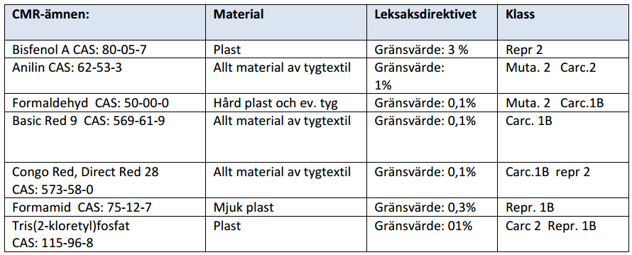 在对来自29家不同公司的112款玩具产品进行分析测试后,结果显示其中17款含有有害物质。其中5款玩具检出邻苯二甲酸酯,1款玩具检出重金属镉,1款玩具的包装检出重金属镉,超出REACH法规附件XVII规定的限量;Kemi还在5款玩具中发现了禁用的短链氯化石蜡,不符合欧盟POP法规(EC)No 850/2004的相关要求;此外,8款电动玩具的重金属铅含量超标,违反了RoHS指令。