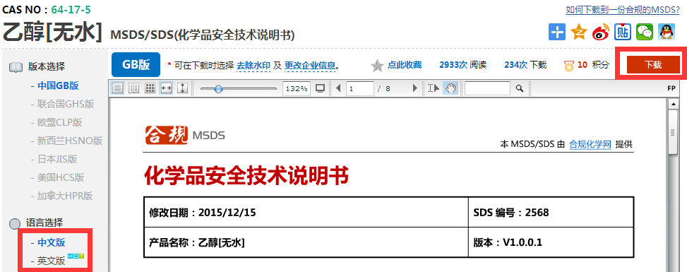 摘要:2016年5月25日,合规化学网MSDS下载改版后正式上线啦!改版后的MSDS下载新增了自动判别功能,已下载过的MSDS报告再次下载会有友情提示。下载速度提升,无缓存下载只需一秒。