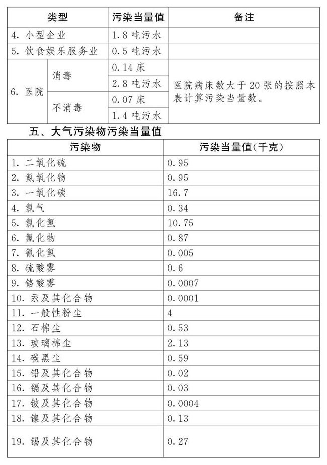 (一)污染当量,是指根据污染物或者污染排放活动对环境的有害程度以及处理的技术经济性,衡量不同污染物对环境污染的综合性指标或者计量单位。同一介质相同污染当量的不同污染物,其污染程度基本相当。