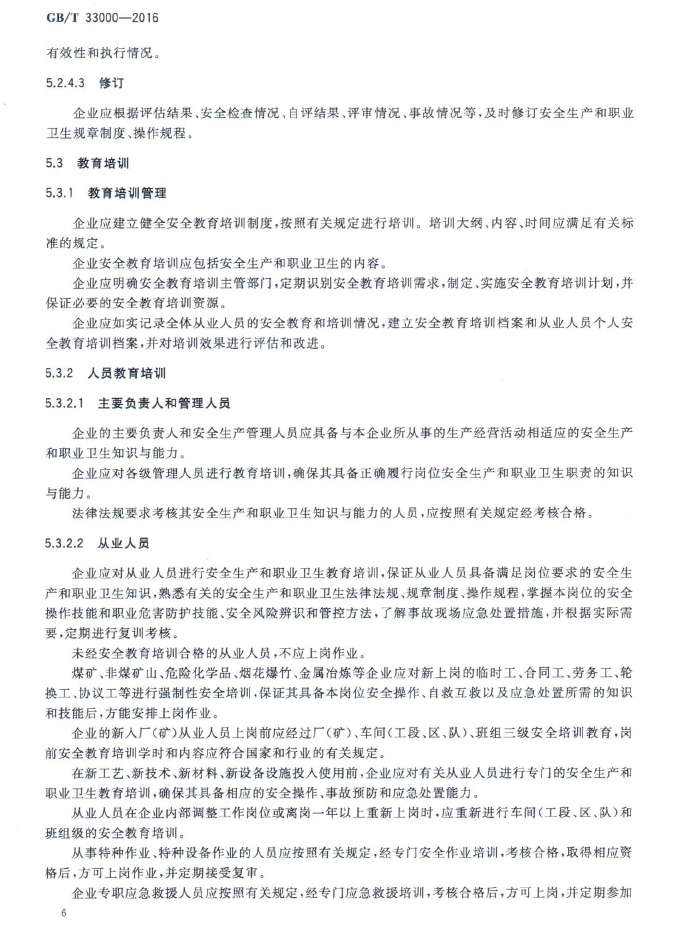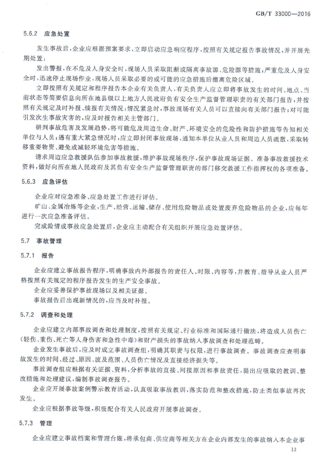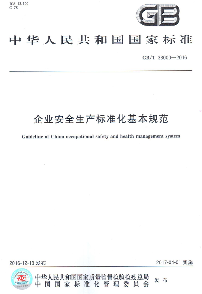 中华人民共和国国家质量监督检验检疫总局和中国国家标准化管理委员会2016年12月13日发布《企业安全生产标准化基本规范GB/T 33000—2016》,该标准于2017年4月1日起实施。