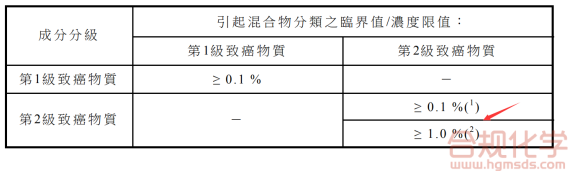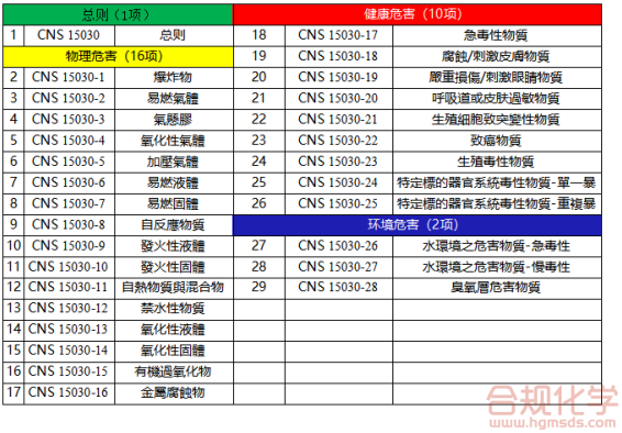 此外,与GB30000系列标准类似,CNS15030系列标准对“生殖毒性”、“致癌性”等健康危害分类的阈值也未作取舍,如图1所示。