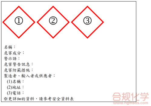 台当局“劳工部门”和“环保署”各自发布的GHS标签要求基本相同,并对标签格式给出了范例,具体如图4所示: