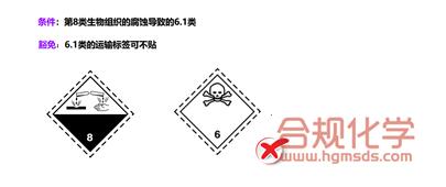 但是,如果第6.1类的危害是由于对生物组织的腐蚀性破坏引起的,就不需要加贴第6.1类标签。具体如图4所示。