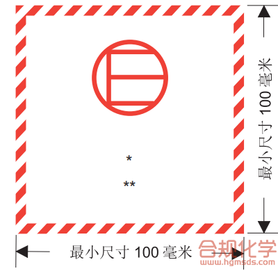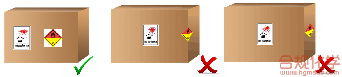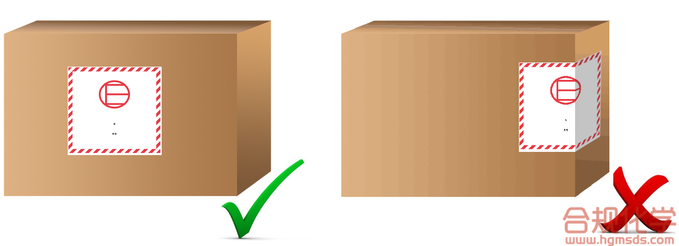 如图8所示,该操作标签必须与危险性标签(Label)相邻,且在包装的同一个面上。