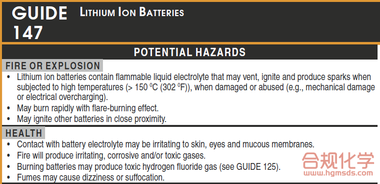 例如,产品是易燃液体,急救措施可按照ERG指南中针对易燃液体的部分。