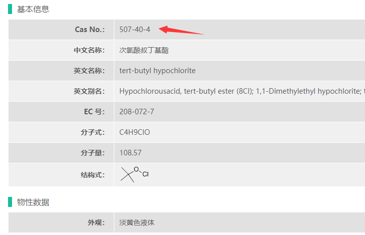 图1 次氯酸叔丁酯的基本信息
