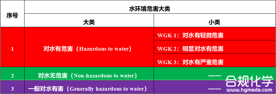 AwSV条例重点监管的对象是对水环境有害的纯物质或混合物,并根据化学物质环境危害的程度不同,划分不同的水生危害等级(Water Hazard Class,简称WGK)。