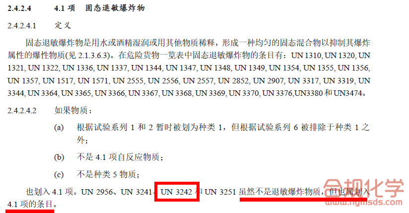 如图4和图5所示,小编的理解联合国TDG法规将UN3242划入第4.1项固态退敏爆炸品。