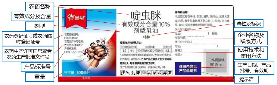 农药等产品的GHS标签和GHS标签略有不同,需要额外附加:每种活性物质的名称和数量、净含量、批号、产品的作用类型、制剂类型、授权用途、提示语句“使用前阅读随附说明”和安全说明产品及其包装的处置等信息。