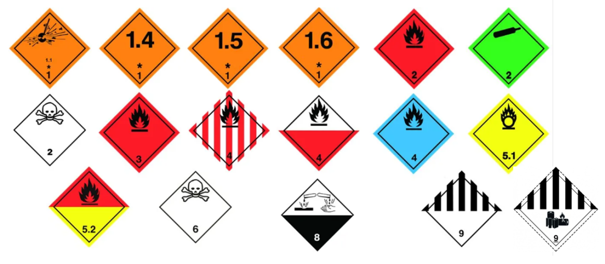 2.运输标签(Lable):危险货物包装表面加贴的运输标签与其所具有的危险性分类结果密切相关,不同危险类别有规定的运输标签(图3.)。