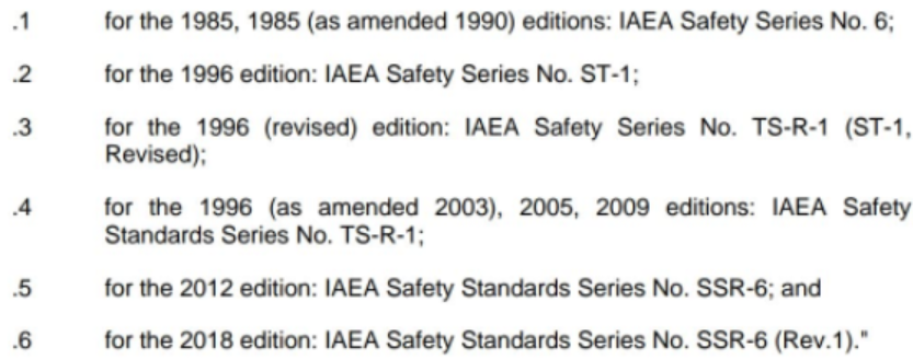 ① IAEA Regulations for the Safe Transport of Radioactive Material:
