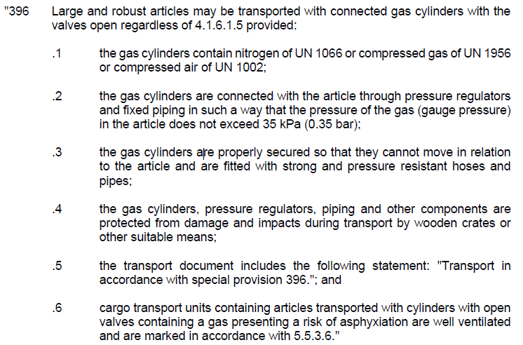 UN3538条目指含有非易燃、无毒气体的物品,新增的特殊规定396如图8所示: