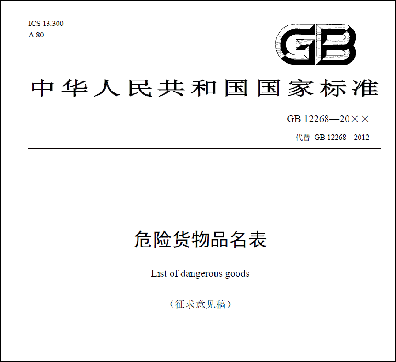 关于征求《危险货物品名表》等2项强制性国家标准(征求意见稿)意见的通知