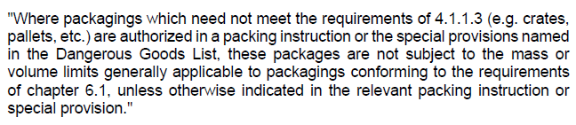(2),包装无需遵守第4.1.1.3的规定,无需通过具体的跌落、堆码等性能测试要求,