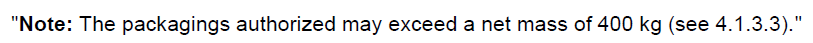 P903(2)条仅适用于单个电池或电池组;同时对于满足P903(2), (4), (5)的锂电池包装,最大净重可以超过400kg。